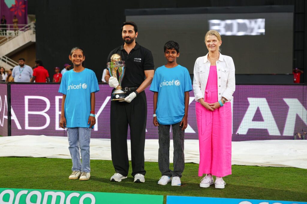 “UNICEF’s partnership with ICC is invaluable in building on the power of cricket to usher in a brighter tomorrow for children. Special thanks to UNICEF India National Ambassador, Ayushmann Khurrana, for his presence and support to the playing teams and for inspiring young minds and audiences across India. Ayushman is inspiring us all to renew our promise for children – enabling healthy, safe childhoods and thriving futures.” commented Cynthia McCaffrey, Representative, UNICEF India.